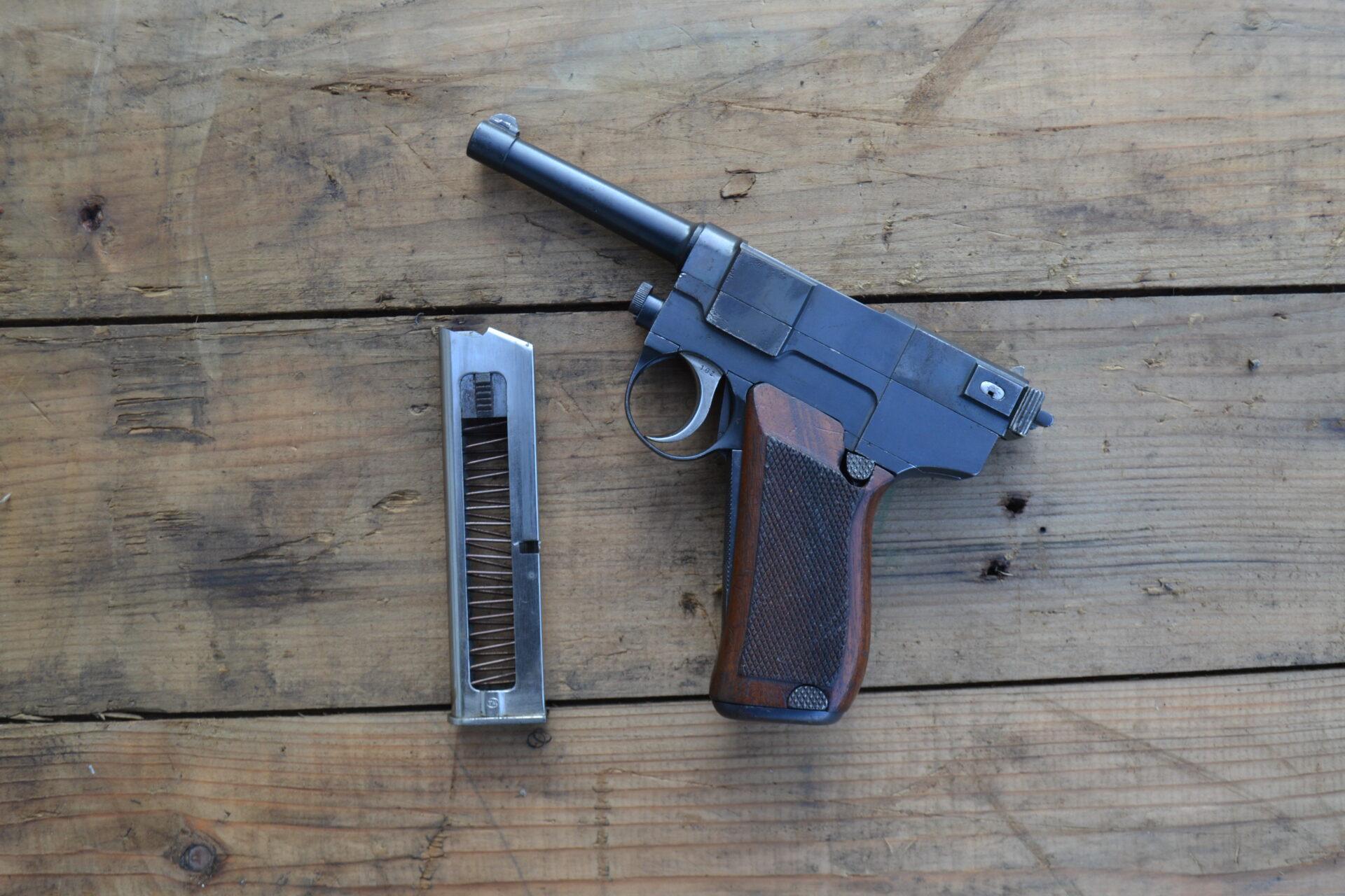 perfect in original caliber, single serial with intact mechanics and good cane